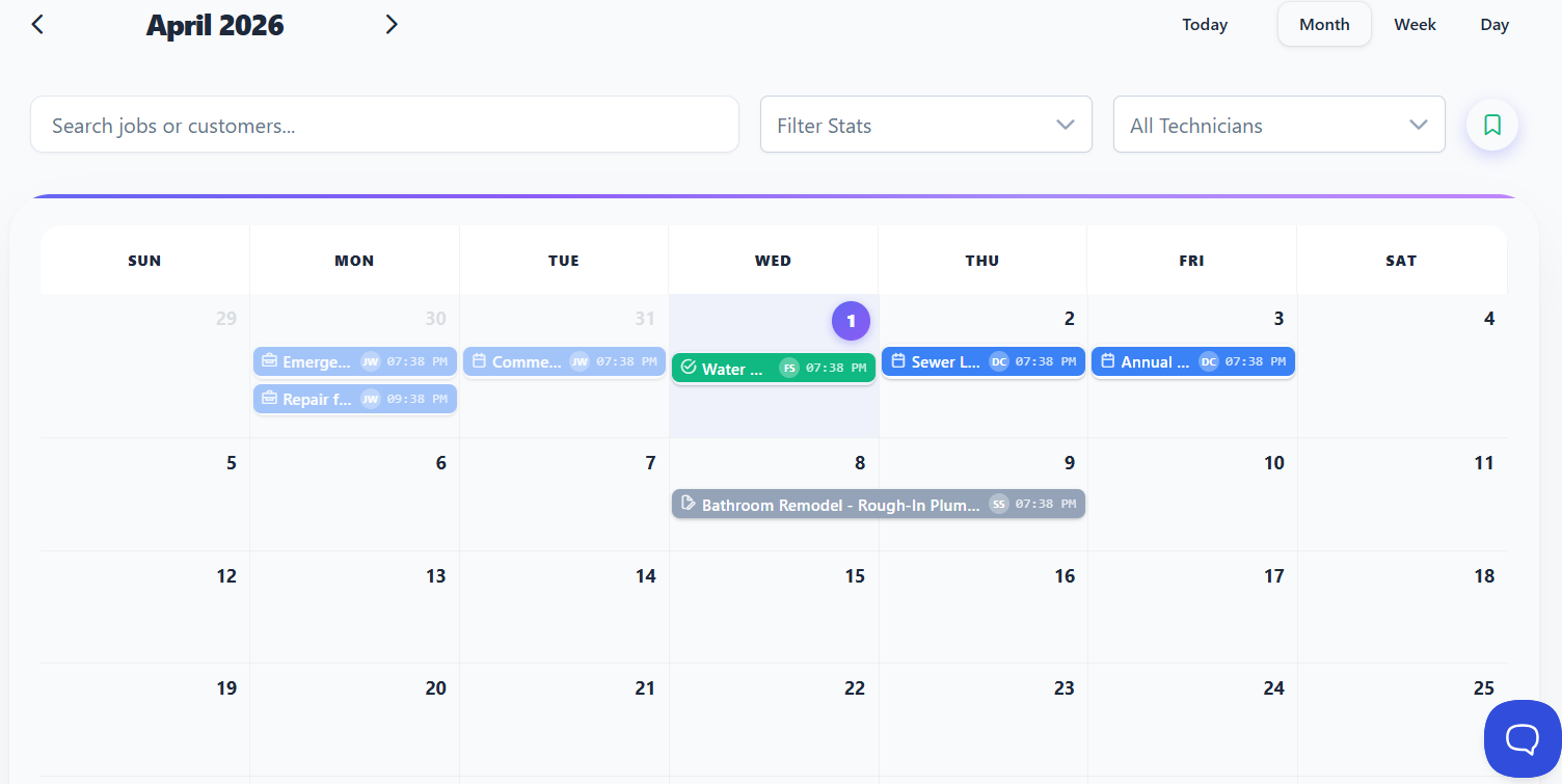 - Month — See all jobs across the month at a glance. Best for planning ahead