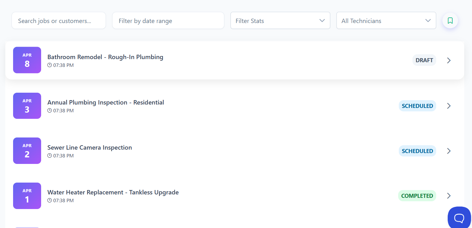 The Schedule view is your central hub for managing when and where jobs happen. Access it from Schedule in the main navigation.