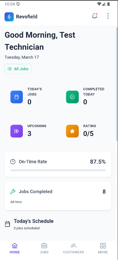 - Bottom Navigation — Tap between Dashboard, Jobs, and More